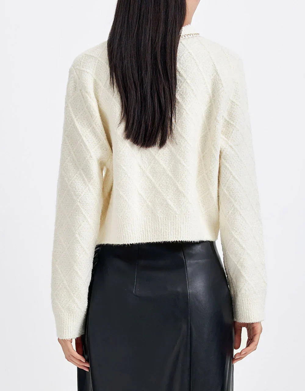 Abraza la elegancia atemporal con el Cárdigan Belinda. Este cárdigan bellamente elaborado irradia sofisticación con su diseño clásico y detalles lujosos. Perfecto para añadir un toque de refinamiento a cualquier conjunto, el Cárdigan Belinda es una prenda versátil que pasa sin esfuerzo del día a la noche.