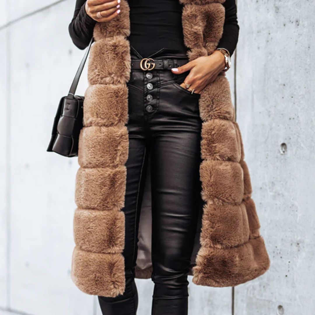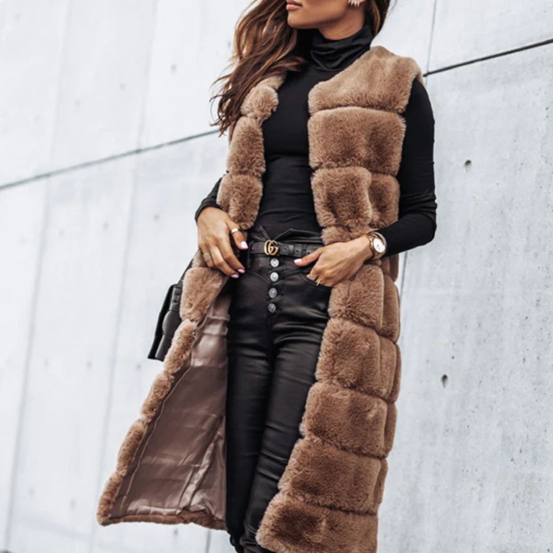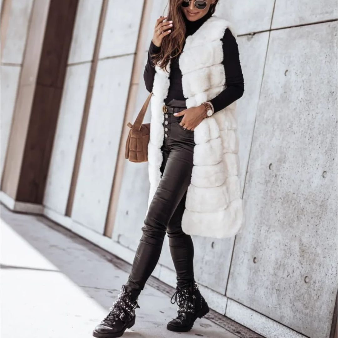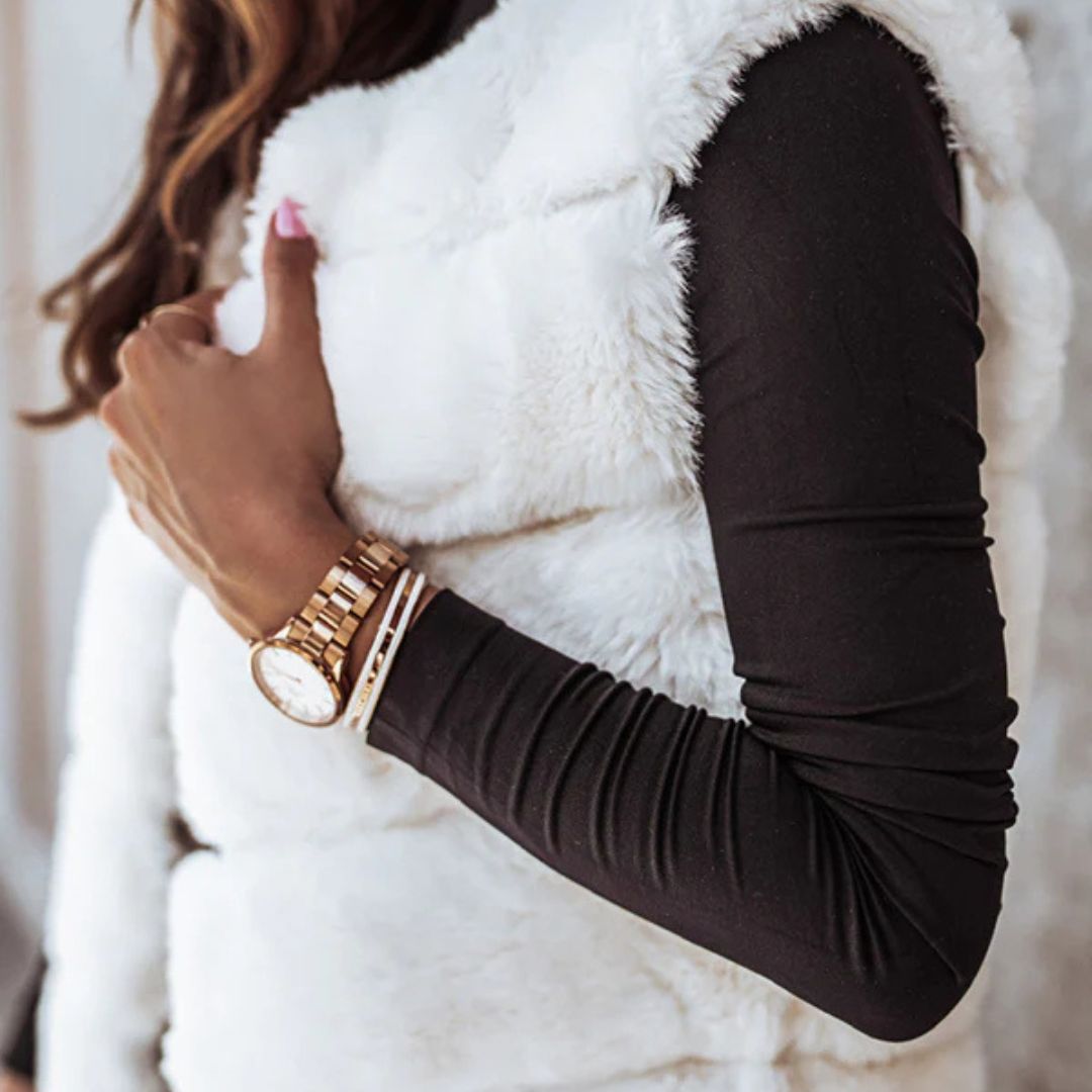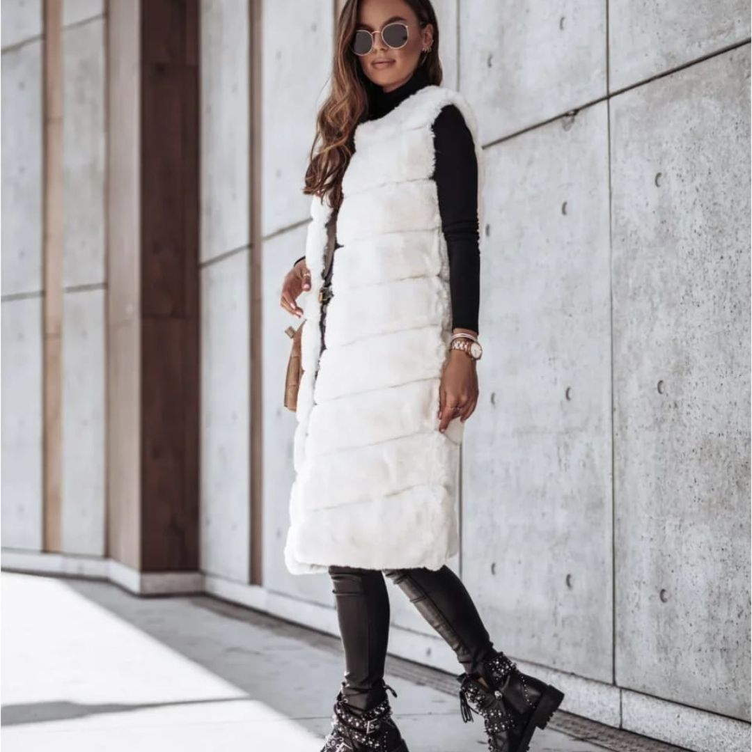 Fabricado con peluche sintético premium, ofrece la textura y el brillo del pelaje natural, pero sin sacrificar comodidad ni conciencia. Ideal para días frescos de otoño e invierno, se adapta perfecto tanto a looks casuales como más elegantes.