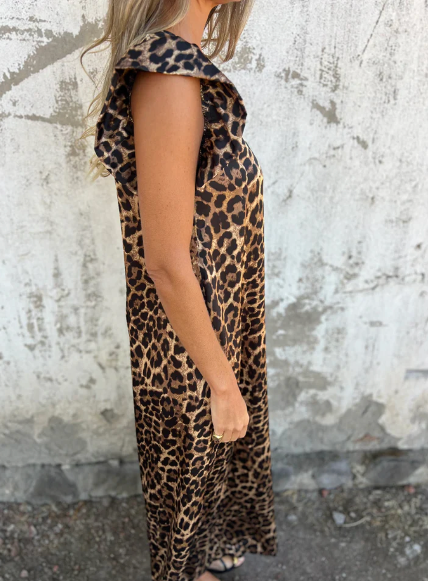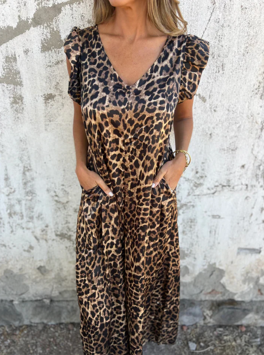 Desata tu lado salvaje con este impresionante mono Sidney de cuello en V y estampado de leopardo 🐆. El estampado de leopardo añade un toque de ferocidad y sofisticación, haciendo que este vestido sea una pieza clave en tu guardarropa.