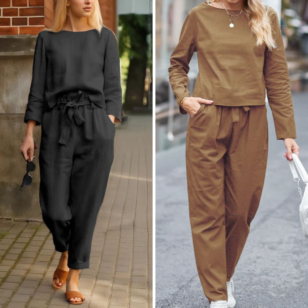 Llévate el Conjunto Triana y siente la frescura del lino con el toque chic que tu día merece.